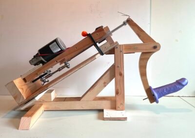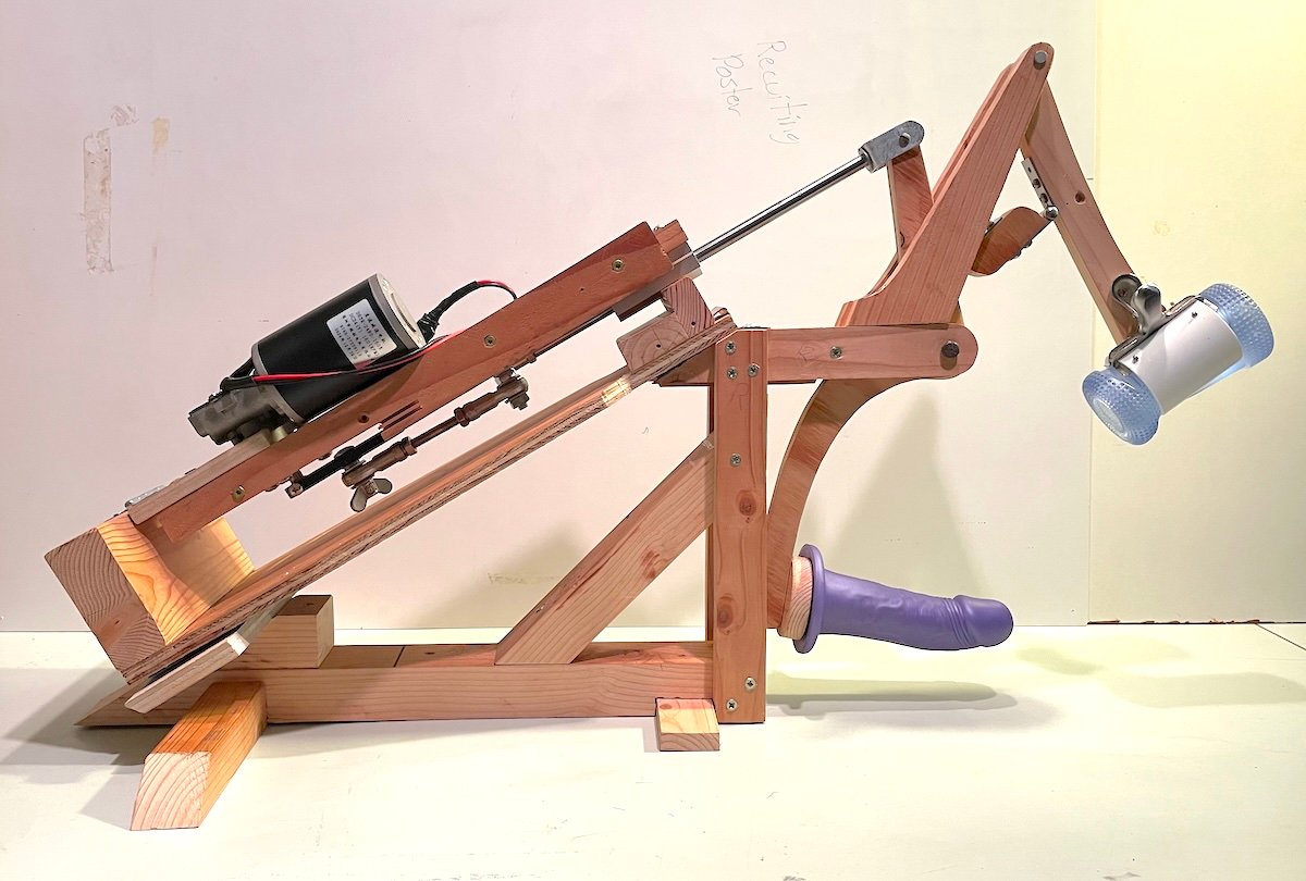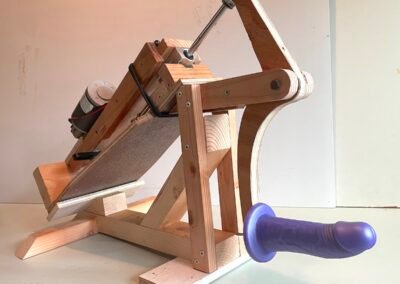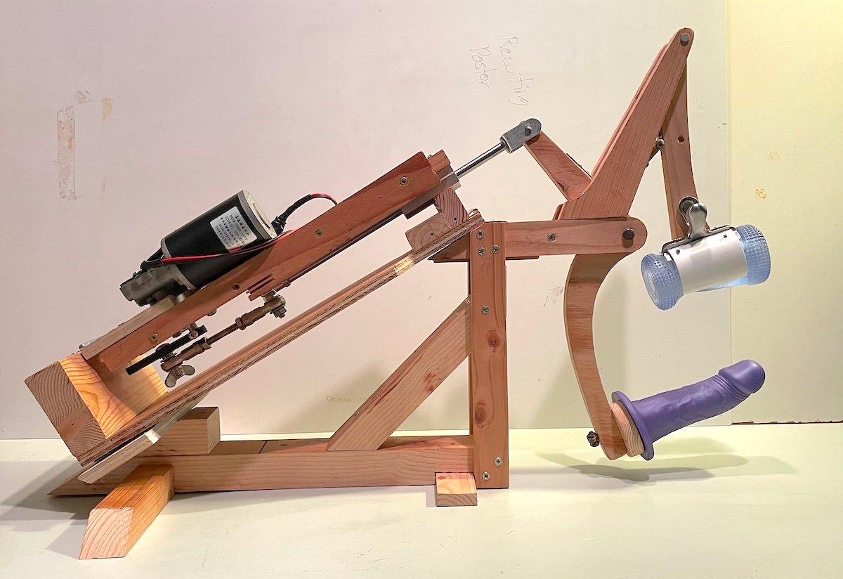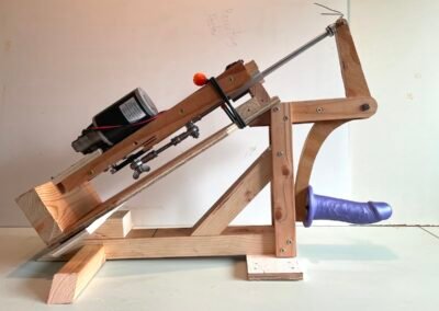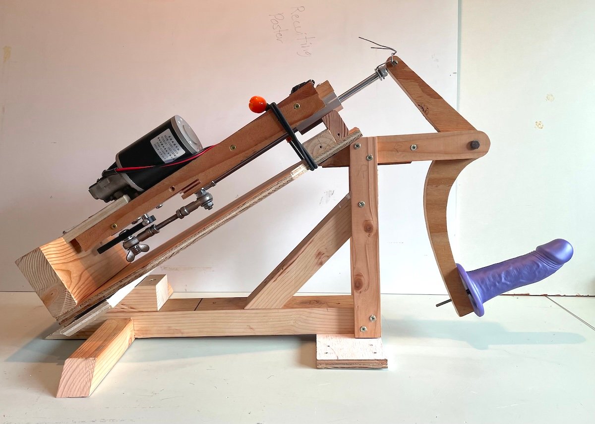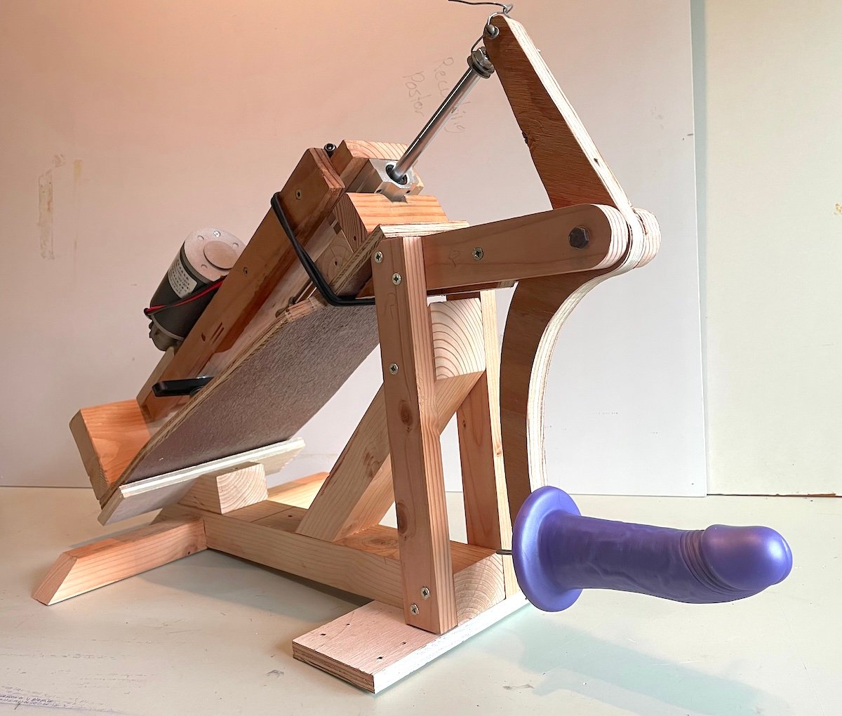 The concept: With a standard Fuck Machine the dildo travels in a straight line, my thought is if you put it on a pivot, the path would be an arc. My favorite position is lying on my back and as pleasurable as it is, I kept wondering, what if the dildo had a bit of an upward angle so it would have more contact with my prostate?