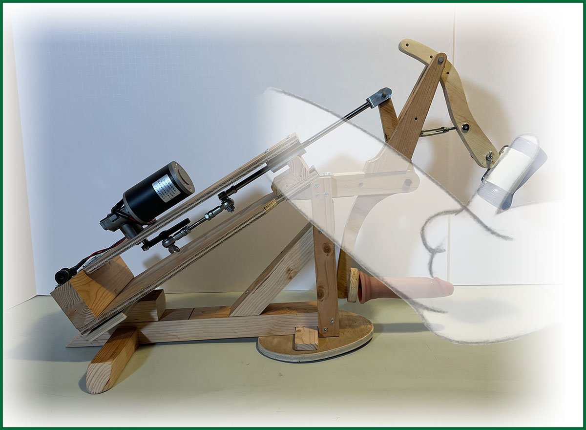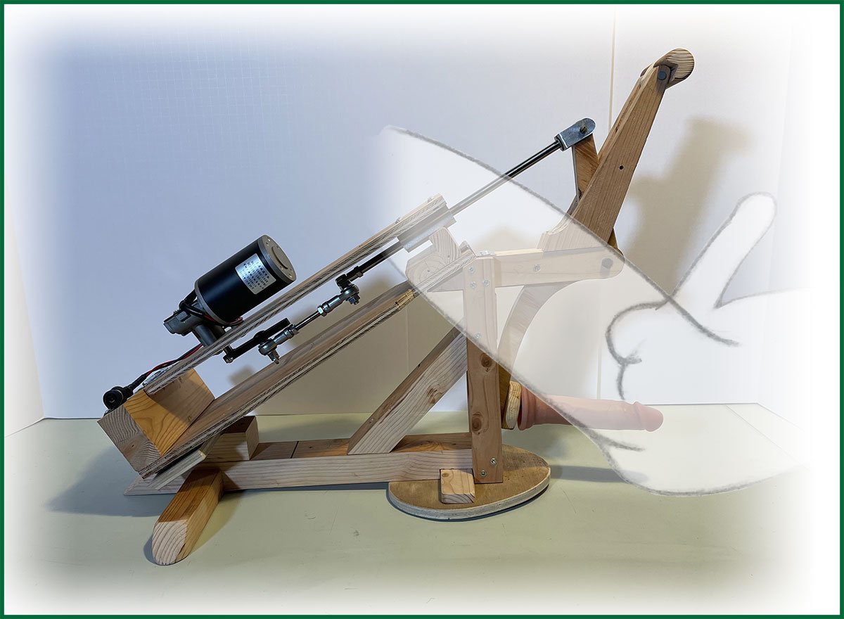 The concept: With a standard Fuck Machine the dildo travels in a straight line, my thought is if you put it on a pivot, the path would be an arc. My favorite position is lying on my back and as pleasurable as it is, I kept wondering, what if the dildo had a bit of an upward angle so it would have more contact with my prostate?